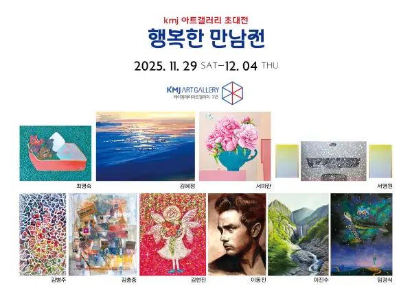 🎨 일상에서 행복을 선사하는 특별한 만남! 10인의 예술가가 펼치는 감동의 향연에 초대합니다. KMJ갤러리에서 따뜻한 12월 마지막달을 맞이하여, 각자의 개성과 철학을 담은 작품 세계를 구축해 온 10명의 역량 있는 작가들이 참여하는 기획 초대전, **'행복한 만남展' ...