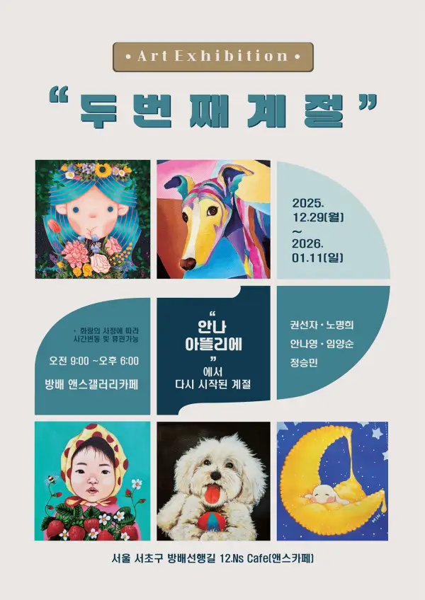 〈두번째 계절〉은 안나 아뜰리에 수강생들이 그림을 통해 맞이한 또 하나의 삶에 대한 기록이다. 이 전시는 단순히 작업의 결과를 나열하는 자리가 아니라, 각자가 지나온 시간과 선택, 그리고 다시 시작하기로 한 마음의 흔적을 담고 있다. 누군가에게 그림은 오랜 꿈이었고, ...