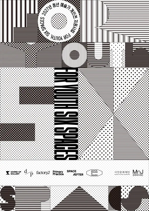 For Youth, Six Spaces 2027년 청년 예술가 개인전 지원사업 공모 2026. 02. 24(화) - 2026. 03. 31(화) 23:00 MnJ문화복지재단, 서전문화재단법인은 6개의 갤러리 : 디피, 상업화랑, 스페이스 애프터, 스페이스 윌링앤딜링, ...
