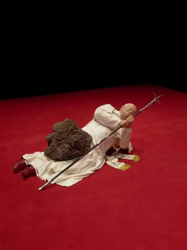 바닥에 운석을 맞은 교황이 쓰러져있는 '아홉 번째 시간'이라는 작품입니다.
