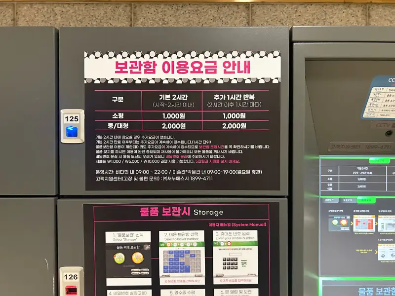 물품 보관함 사용하실 분들은 이용 요금이랑 위치 안내 확인하시면 좋을 것 같아요!