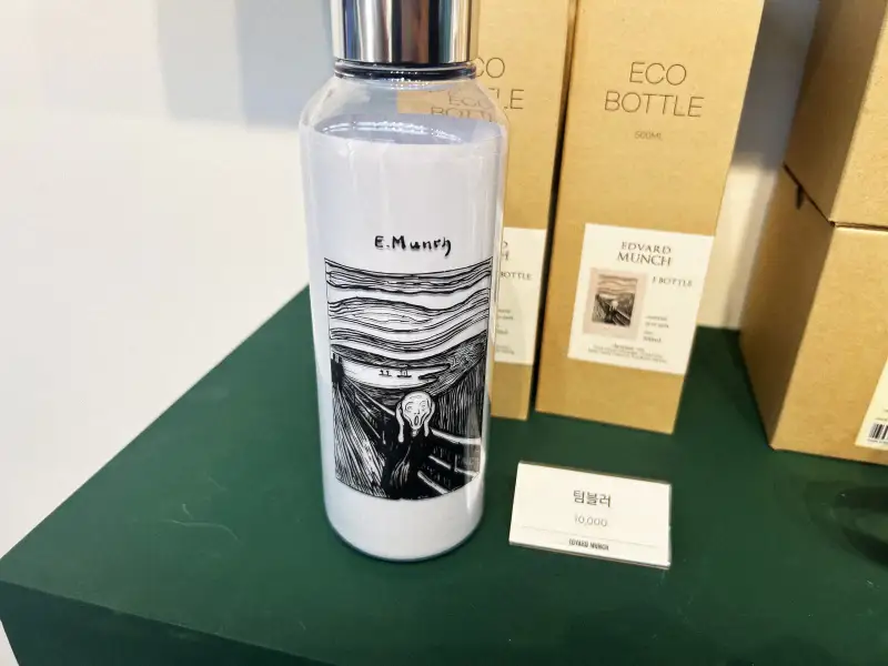 텀블러는 종류가 하나였고 뭉크 그림이 그려져있는 투명한 물병입니닷!