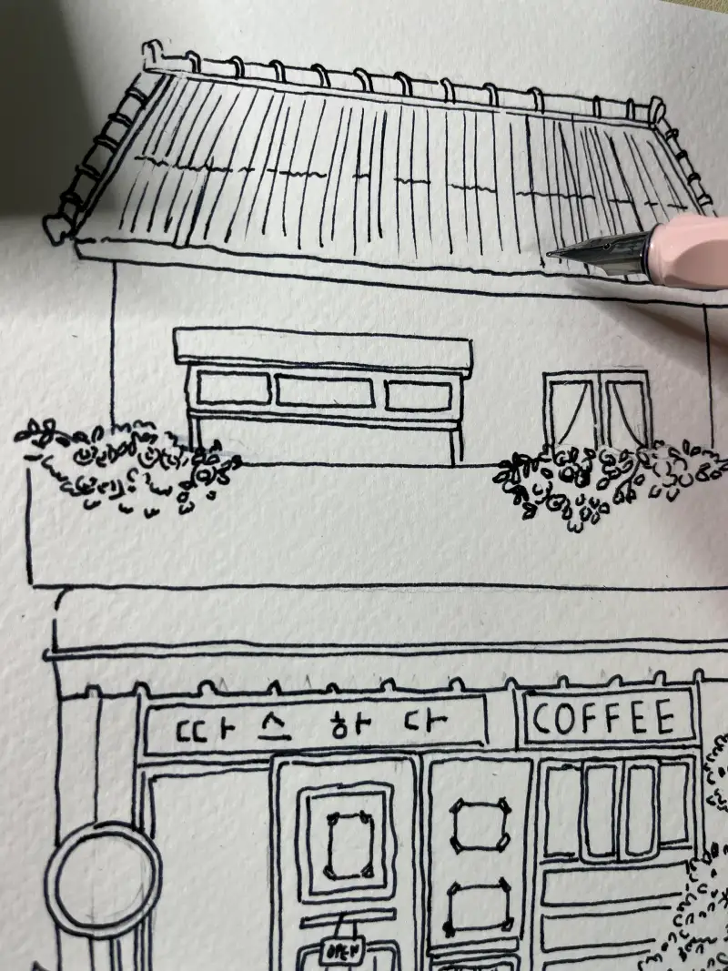 오일파스텔로는 가게를 그리기 어려워서