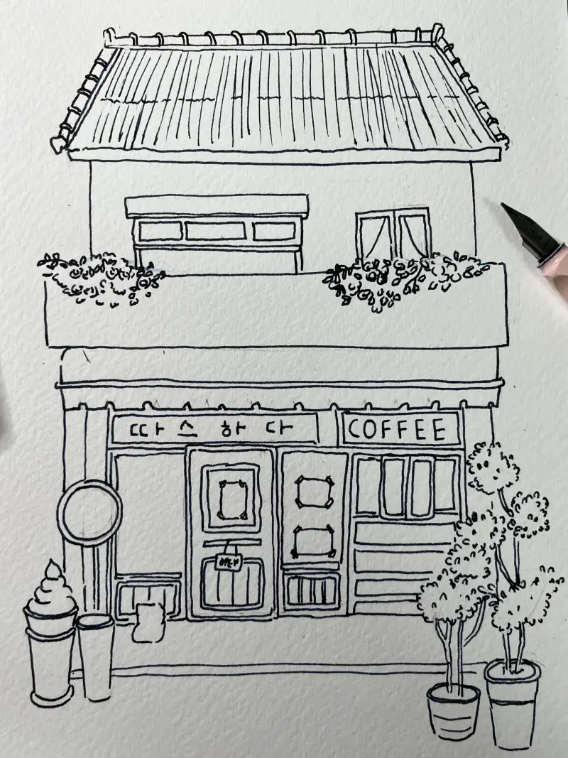 어반 수채화 컬러링북에 있는 카페그림을
