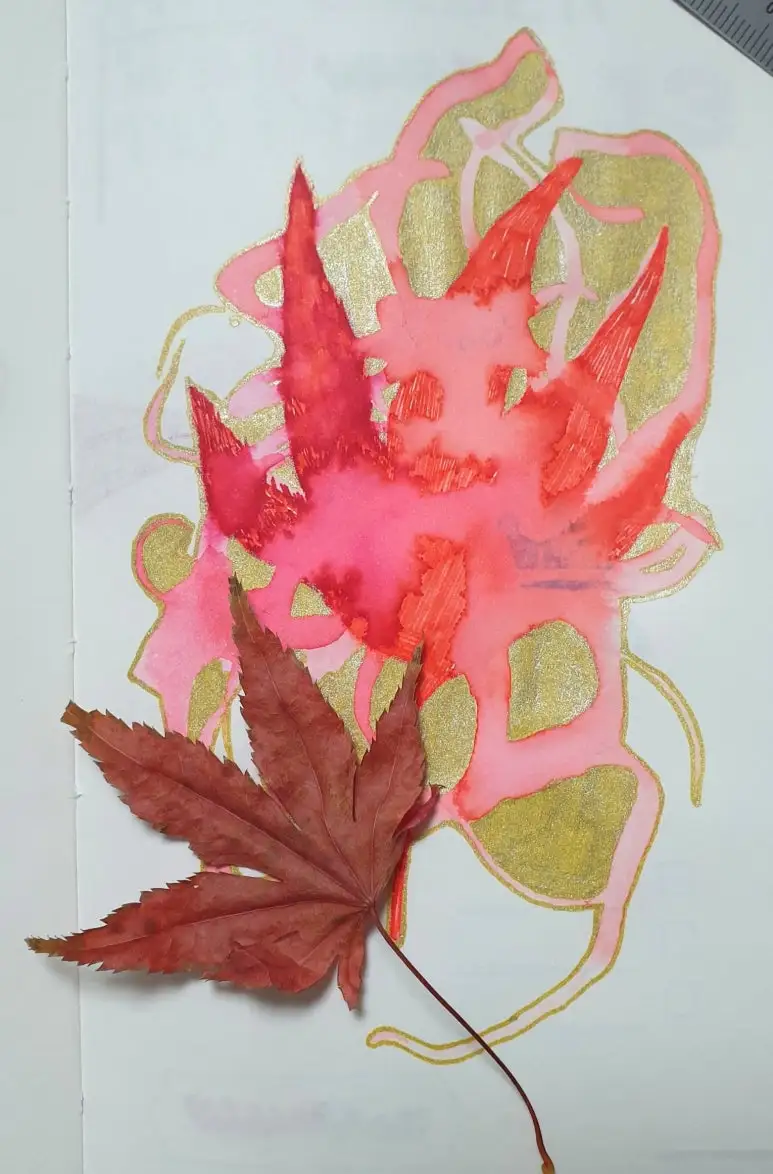 모나미 플러스 펜과 메탈컬러 펜을 사용하여 단풍을 재미있게 표현해 보았습니다.