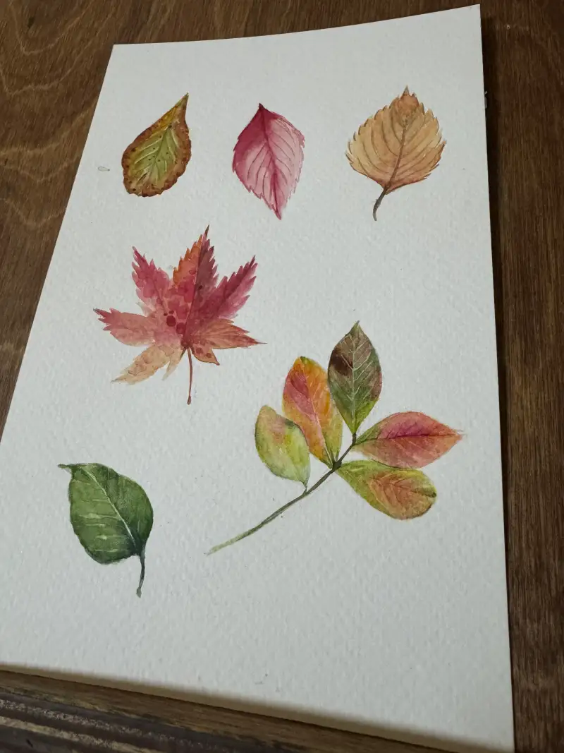다채로운 가을의 낙엽을 그려보았습니다.