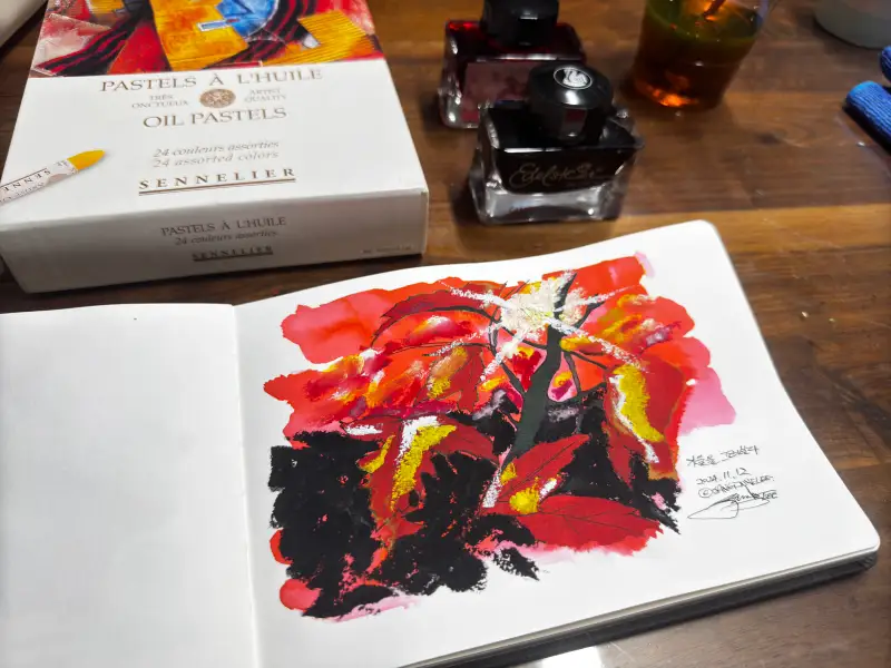 잉크랑 오일파스텔이랑 혼용을 해보기로 마음을 먹고 작업을 시작