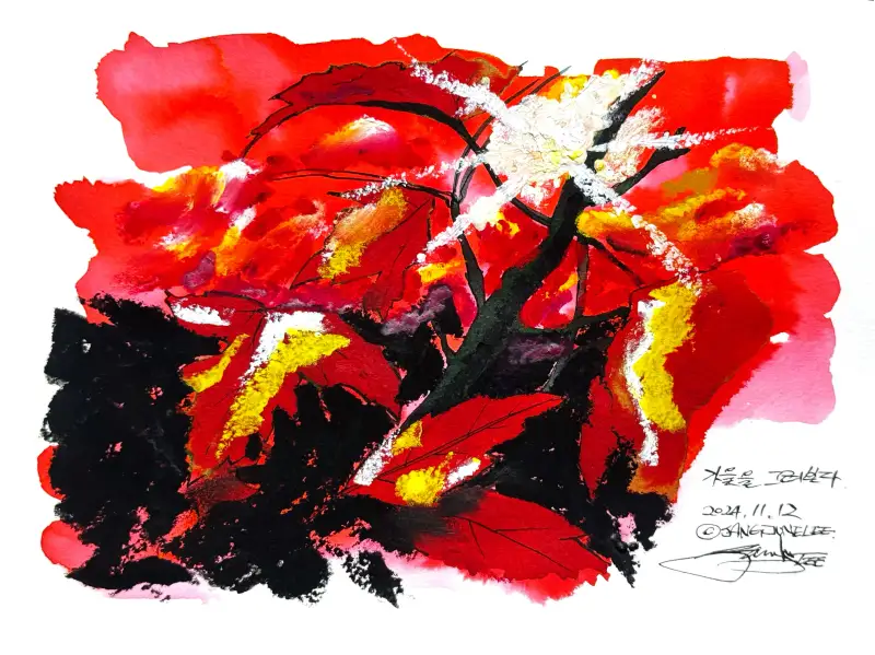 원랜 역광을 받은 예쁜 단풍을 생각하고 그렸는데...