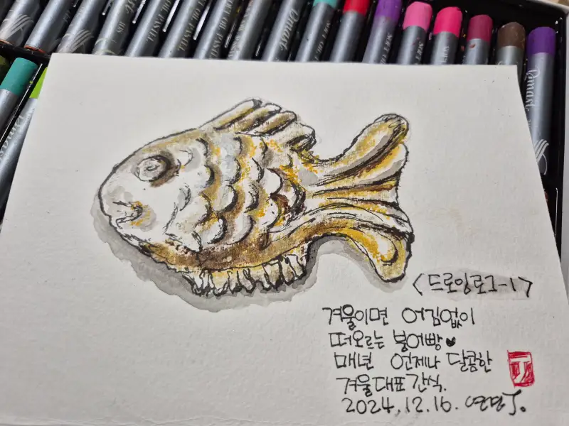 매년 붕어빵이 보이면 겨울 시작_올해는 추위가 늦게 찾아와서 그런지 이제서야 2024년 붕어빵을 그림기록으로 남긴다