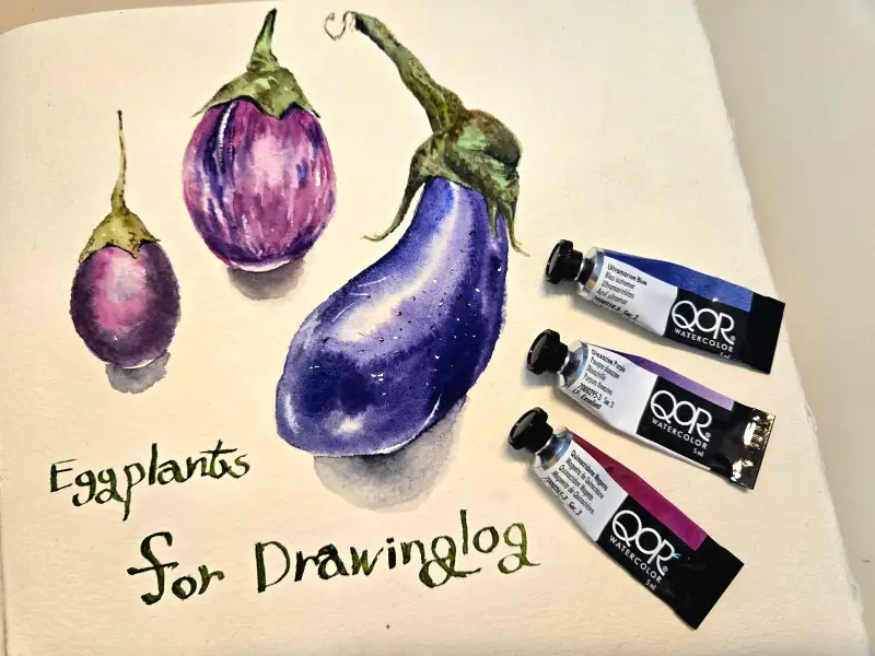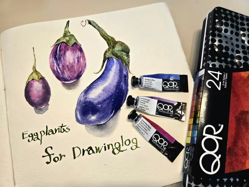 골덴 쿠아 수채화 물감으로 가지를 그려봤어요.
