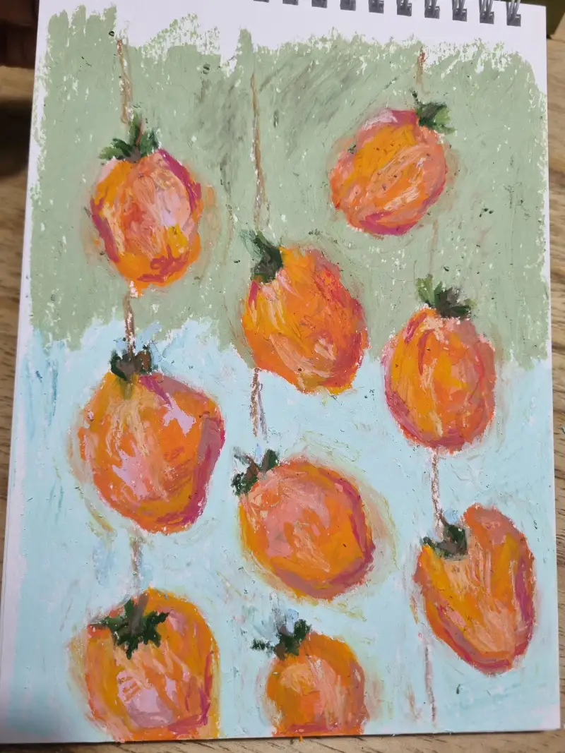 손쉽게 먹지만 만드는데 꽤 많은 정성이 들어가는 곶감을 그려보았습니다.