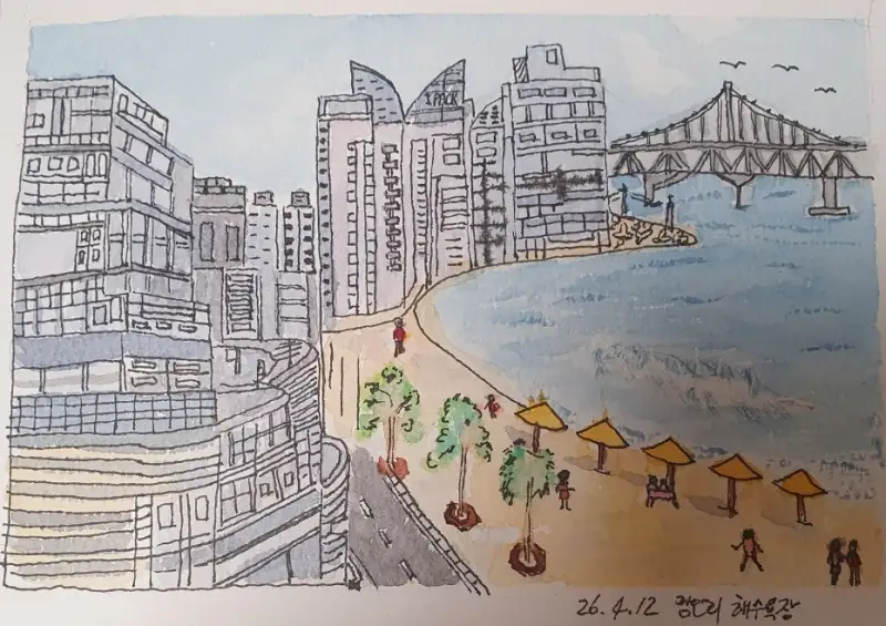 숙소에서 창으로 보이는광안리해수욕장그리다!