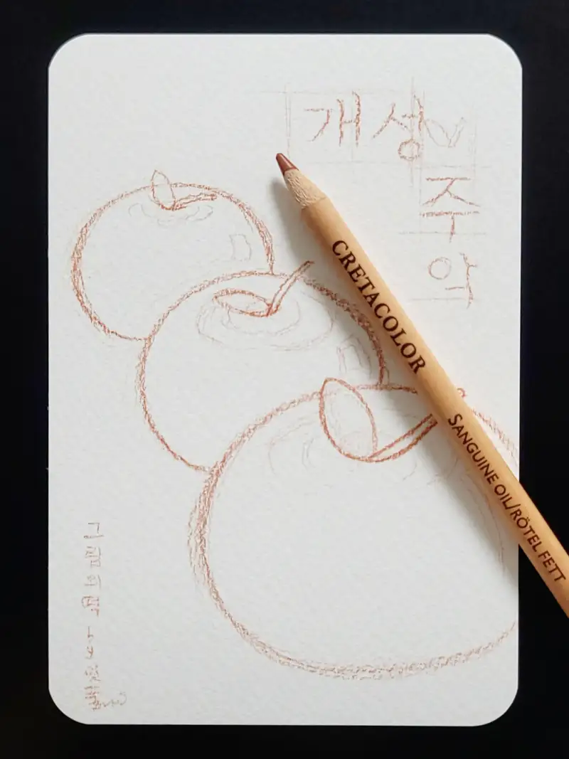 크레타칼라 연필콘테로 밑그림을 그렸고요
