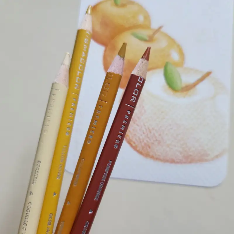 희미하게 보이도록 지우개로 지운 뒤, 프리즈마 유성색연필로 색칠했어요