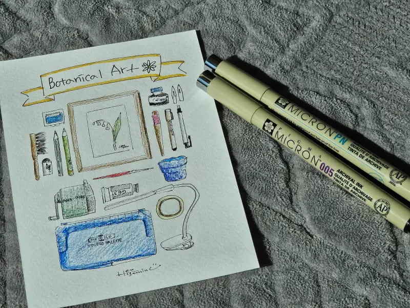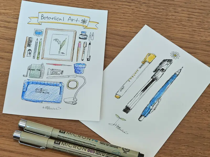이번 그림은 현재 보타니컬아트를 그릴 때 필요한 재료들을 나열해서 그려보았습니다
