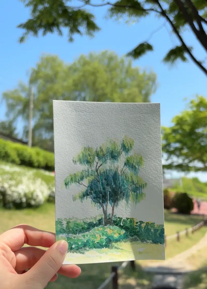 그림자 뼈대 먼저 잡아주고 나무를 그리려고 했어요