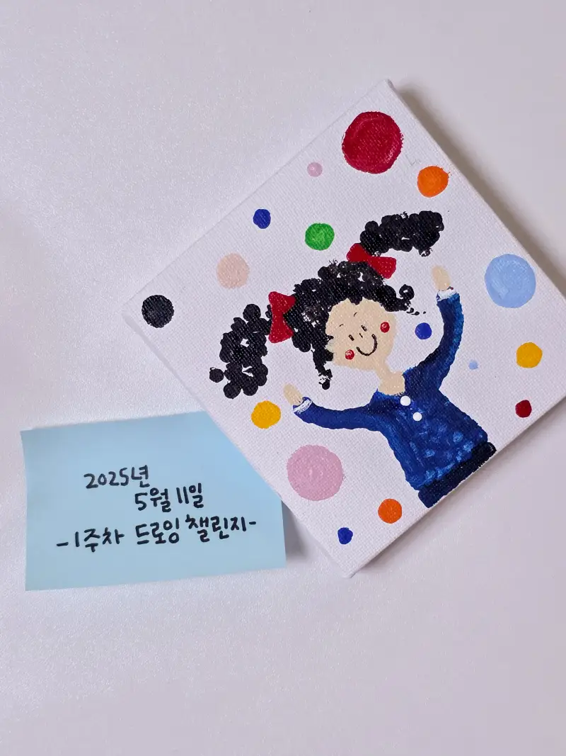 아크릴 물감에 면봉을 이용해서 그렸어요.