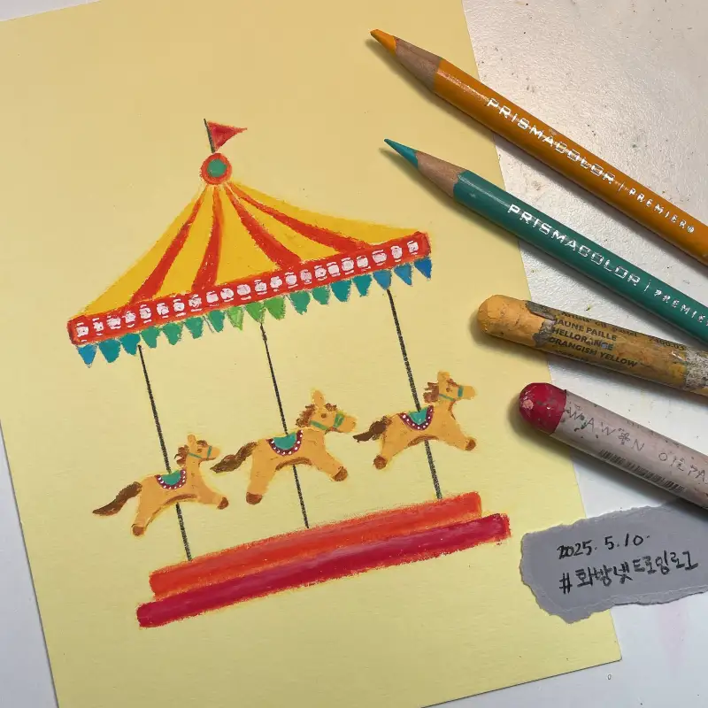 귀여운 노란색 종이에 그렸어요🎠🎡