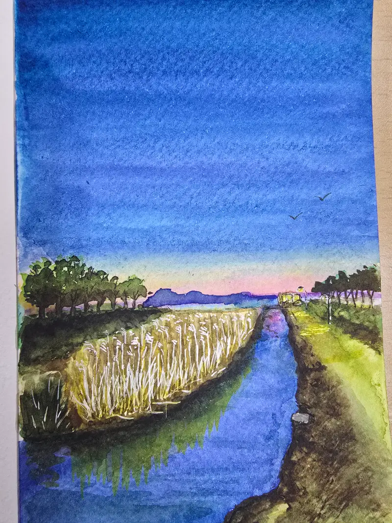 노을이 멋진 다대포해수욕장의 저녁 노을을 그려봤어요.