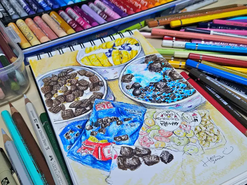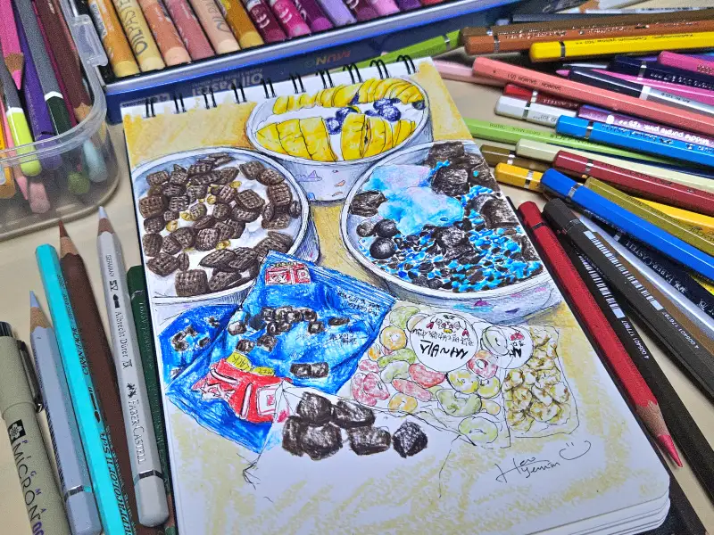 먹을 때는 몰랐지만 막상 그려보니 하나하나 제가 실력이 부족해서 그런지 이번에는 꽤 완성하는 시간이 오래 걸렸습니다:)