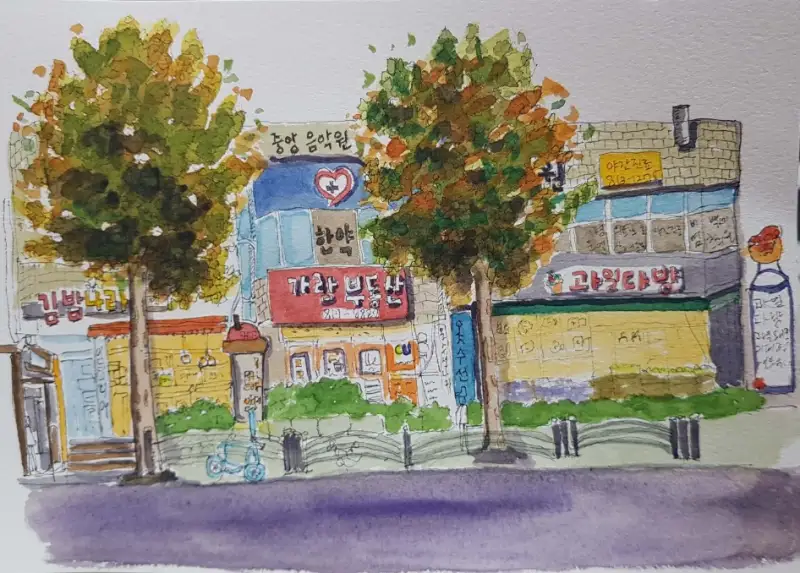플라타너스 나무가 이뻐서 그거에맞춰 사진찍고 그려봤어요