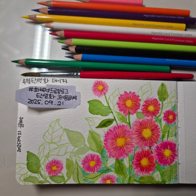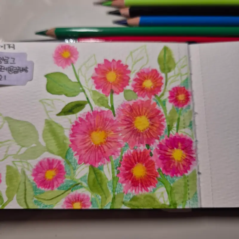 색연필로 꽃잎도 더 채워주고