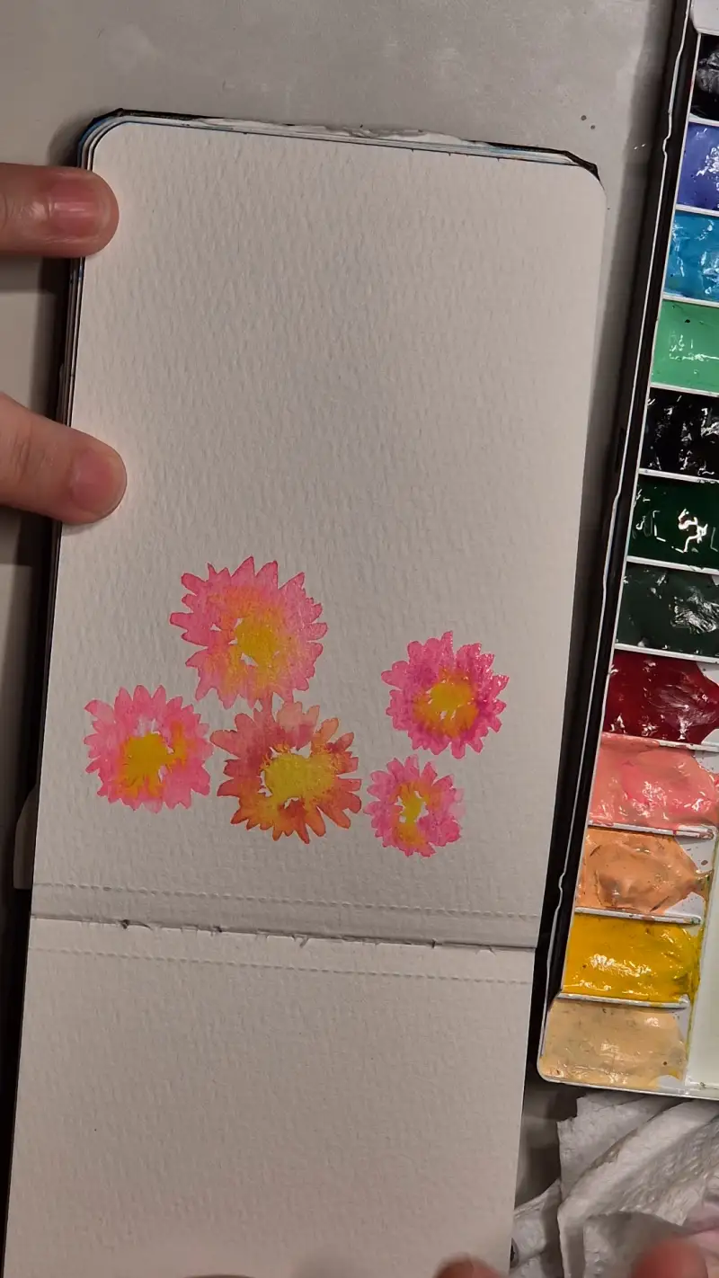 물감이 마르기 전이라 노란색과 핑크색이 마구 섞여버렸지만