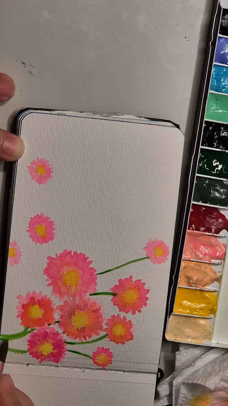 꽃을 다 그린 후 꽃 줄기를 먼저 그려 줍니다
