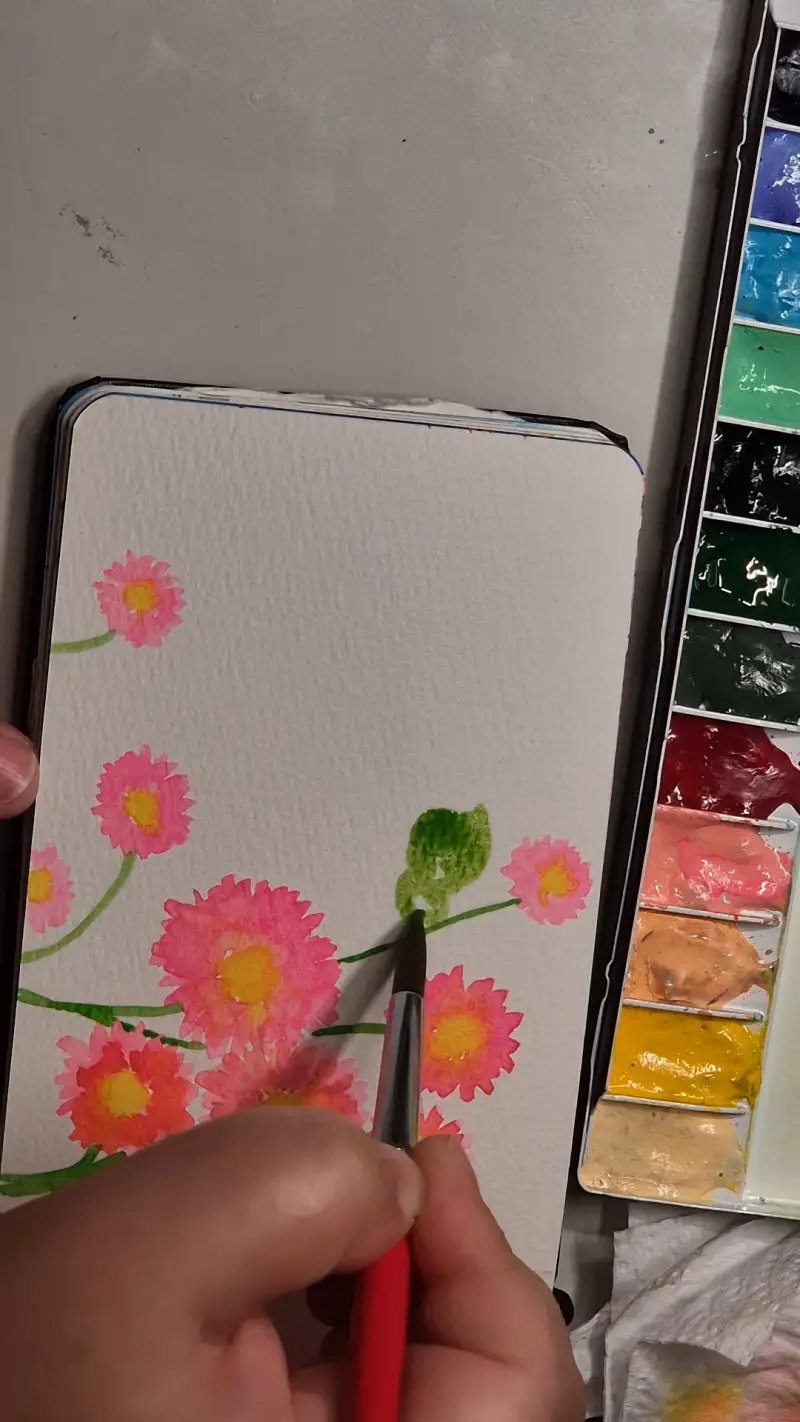 그 후 줄기 틈틈이 잎을 그려 줍니다