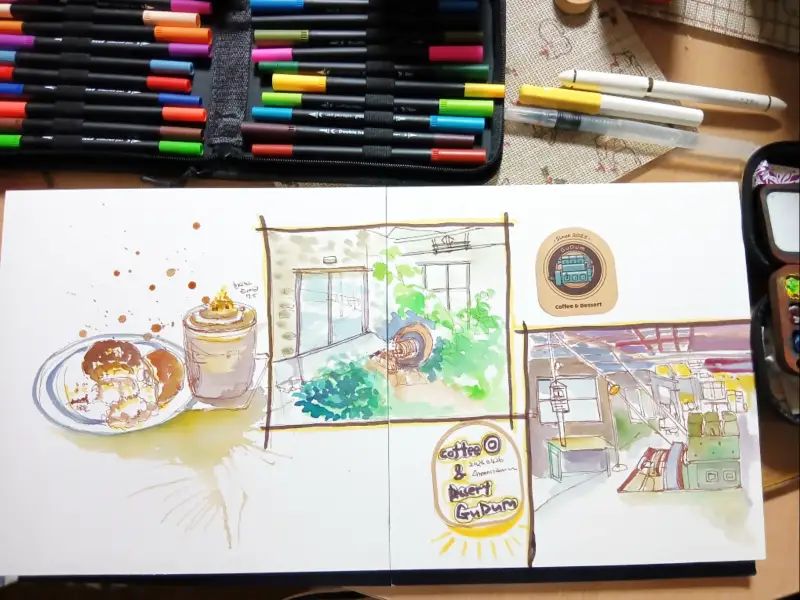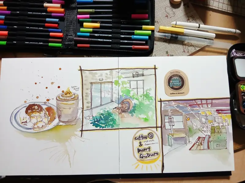 드로잉로그&스테들러 15 2주차 카페그림리기 - 화방넷 커뮤니티
