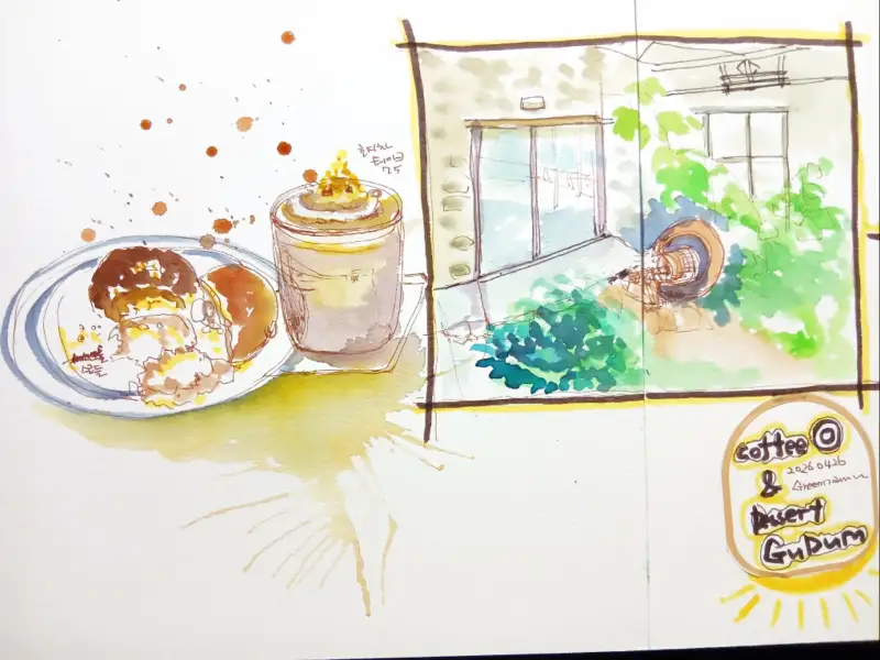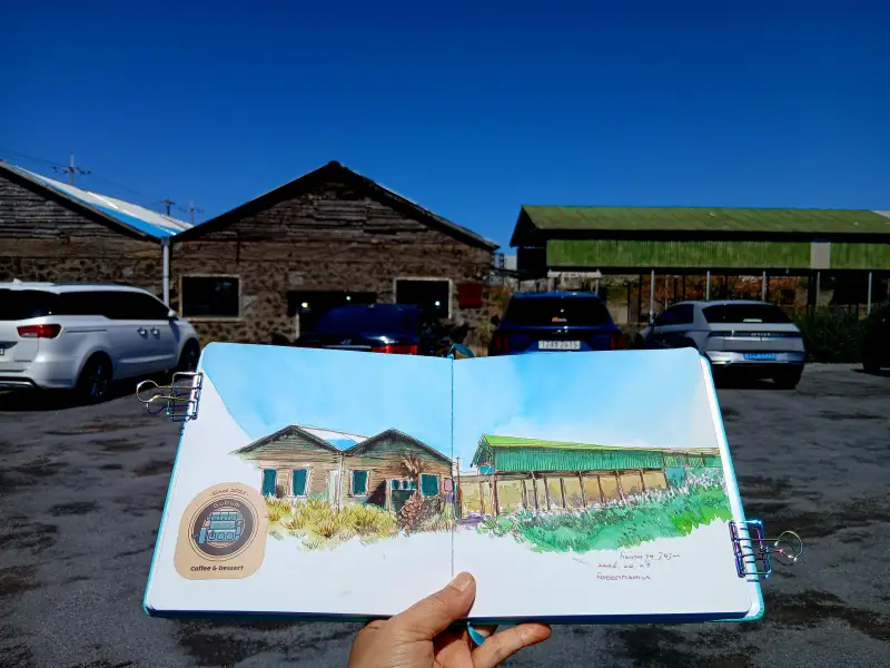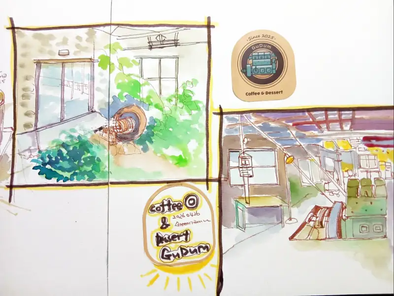 전에 방문시 그렸던 구둠카페의 실외 모습입니다