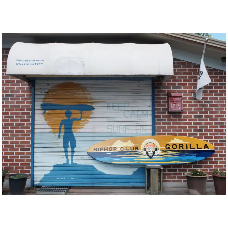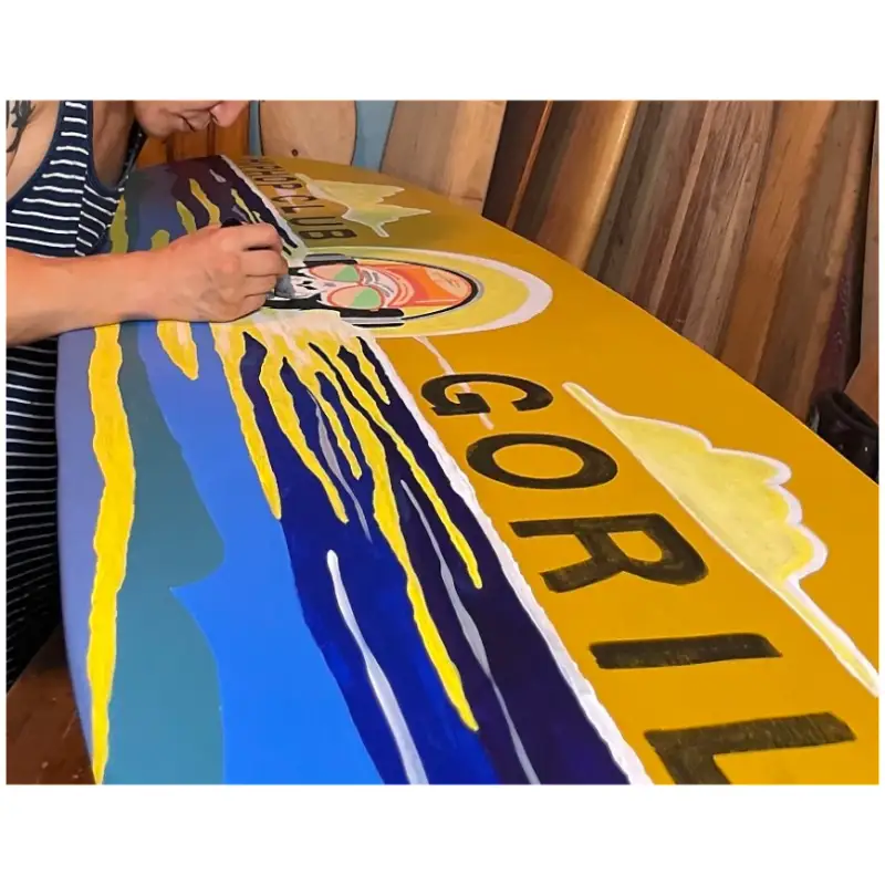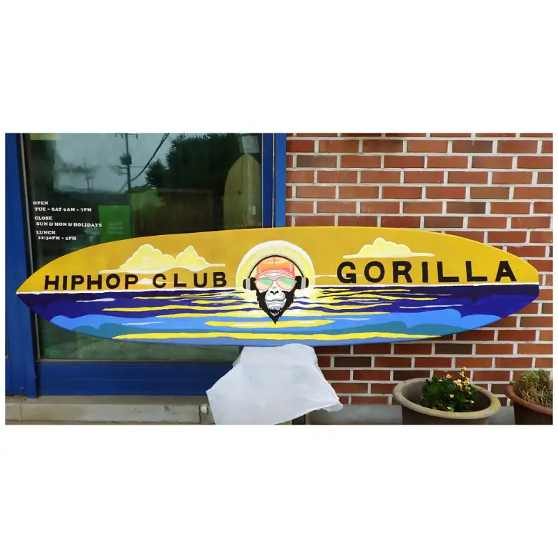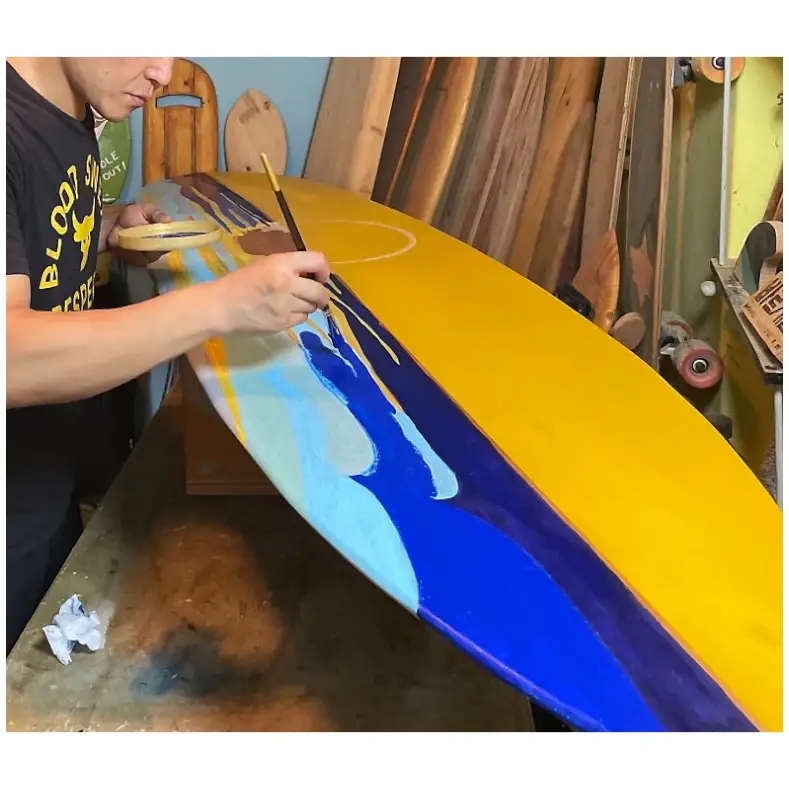 직접 다듬은 나무서프보드에