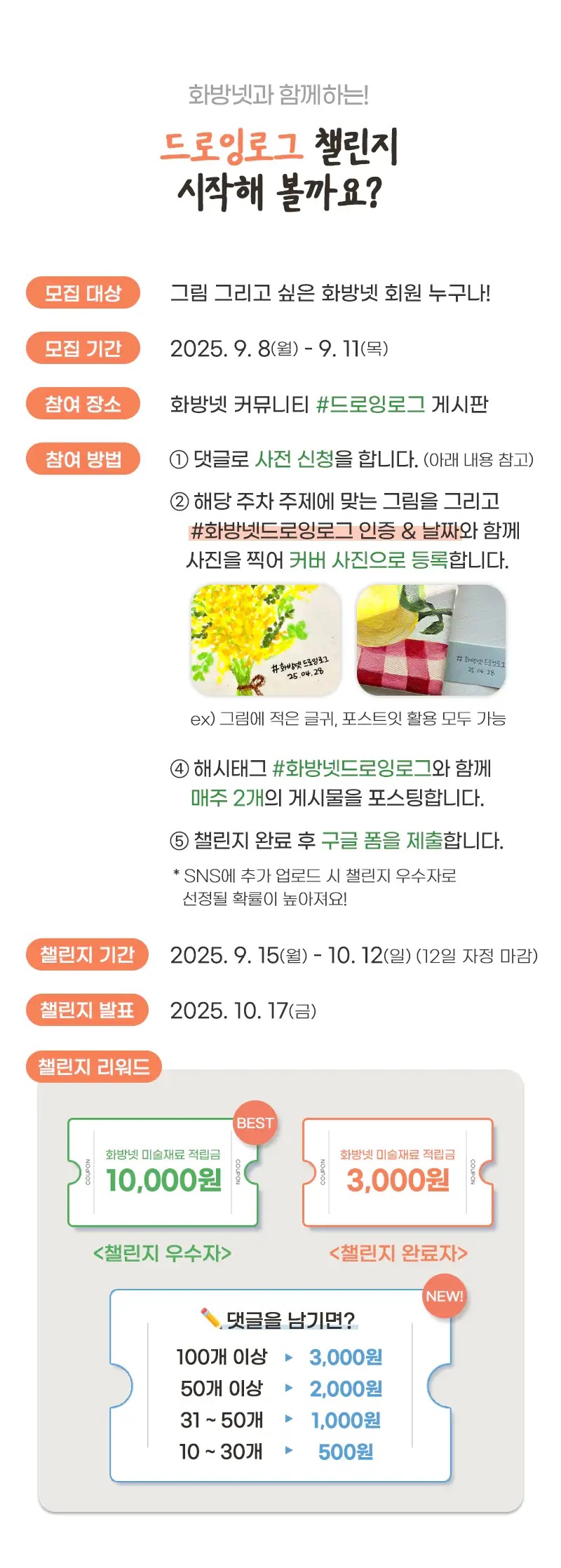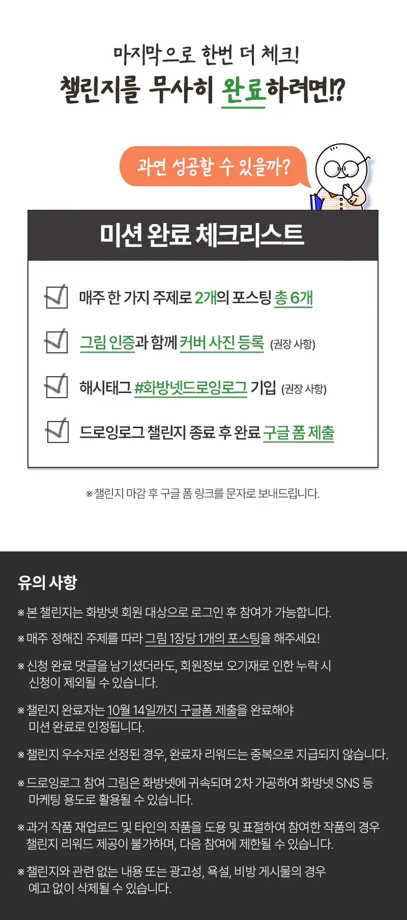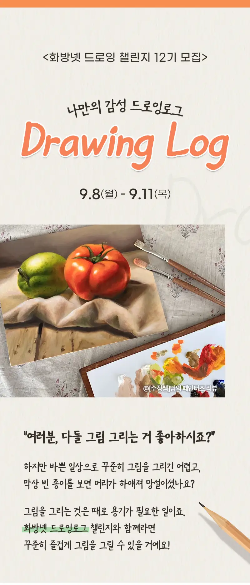 화방넷 드로잉로그는 저에게 그림을 통해 작은 성취와 큰 즐거움을 동시에 안겨준 챌린지였습니다.