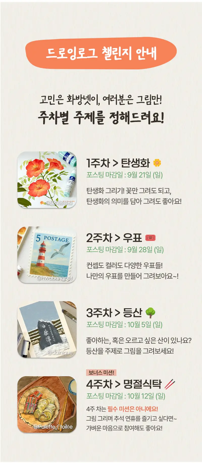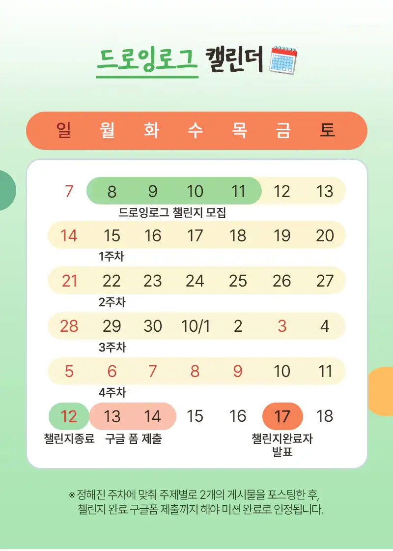 그리고 추석 연휴 일정으로 '4주차 보너스 미션'이 있어요!
