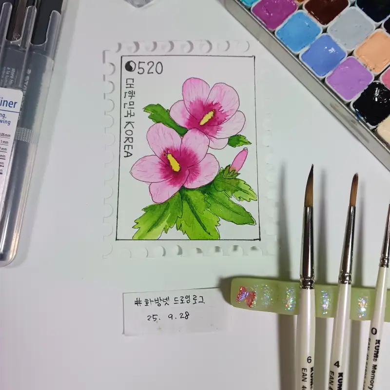 #화방넷드로잉로그 #드로잉로그챌린지12기 #드로잉로그 #2주차 #우표 #무궁화