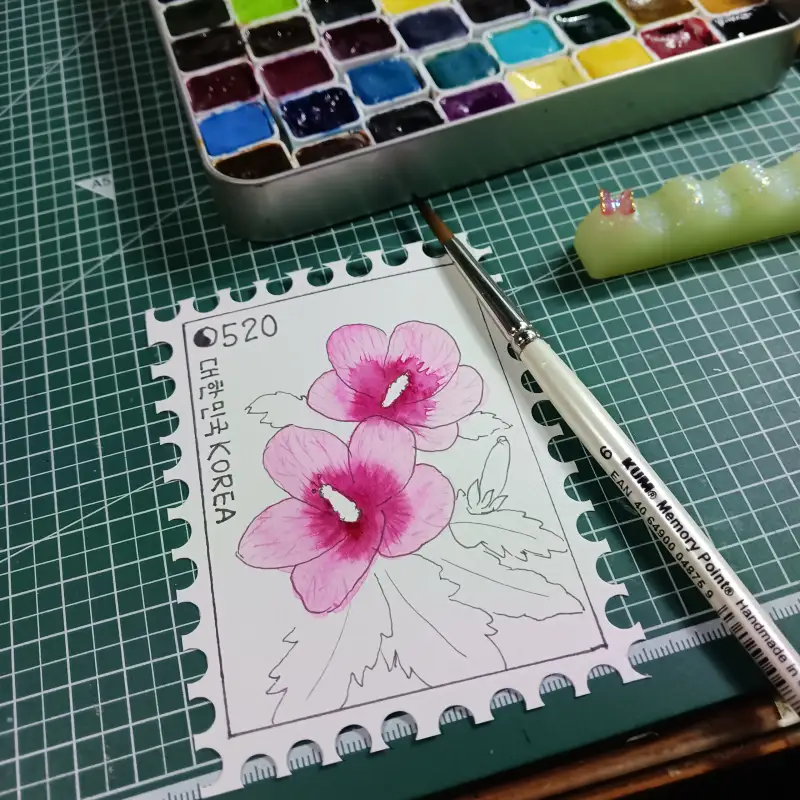 여러 우표 중에서 무궁화 우표를 그려보았는데요