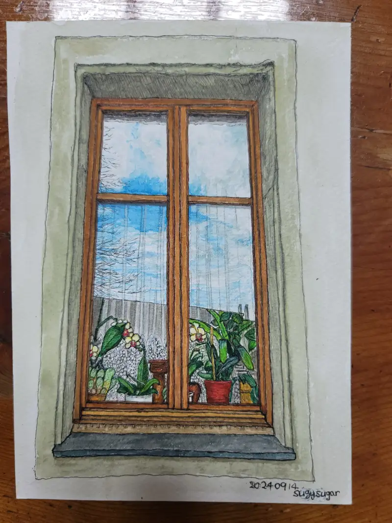 <창문에 비친 하늘>과 <불타오르는 듯한 저녁 노을>은 8년 전, 동유럽 여행을 갔다가 찍었었던 사진을 보고 그렸어요.