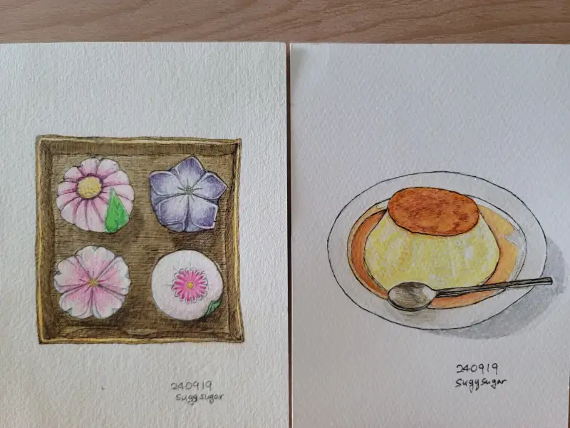 드로잉로그 챌린지 3주차_디저트_화과자와 푸딩