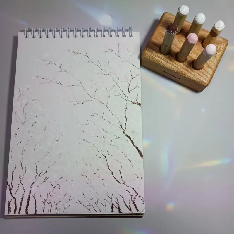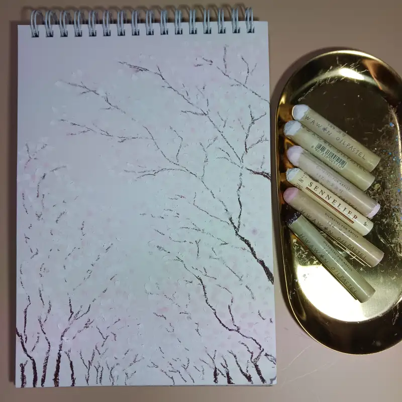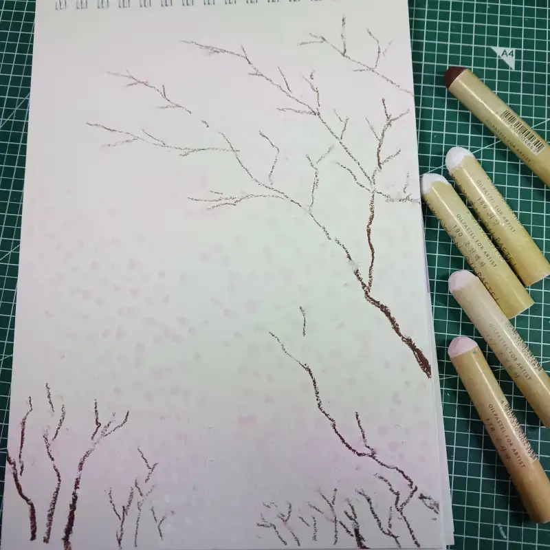 이번에도 오일파스텔로 그렸어요. 운이 좋게 화원 오일파스텔에 벚꽃 색이 있기에 맘껏 사용해 봅니다.