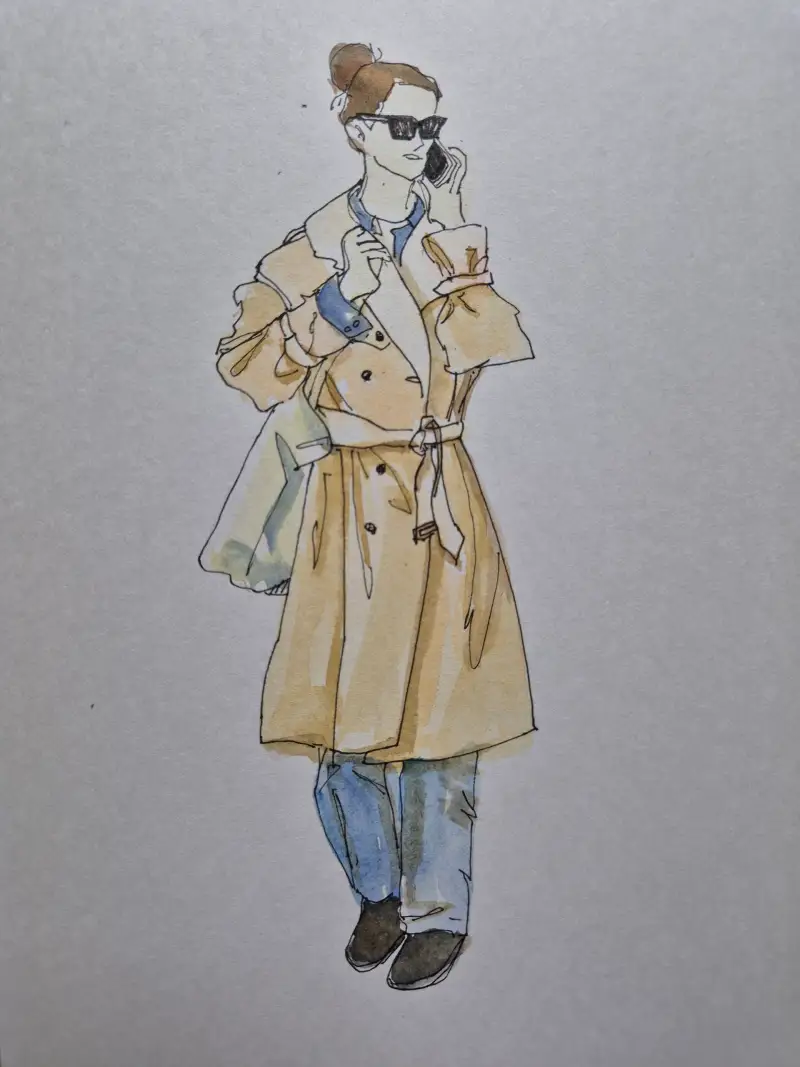 트렌치코트를 툭 걸쳐입고 걷는 가을길