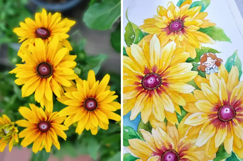 드로잉로그 1주차 여름식물 - 루드베키아