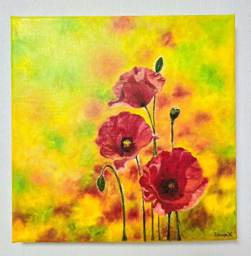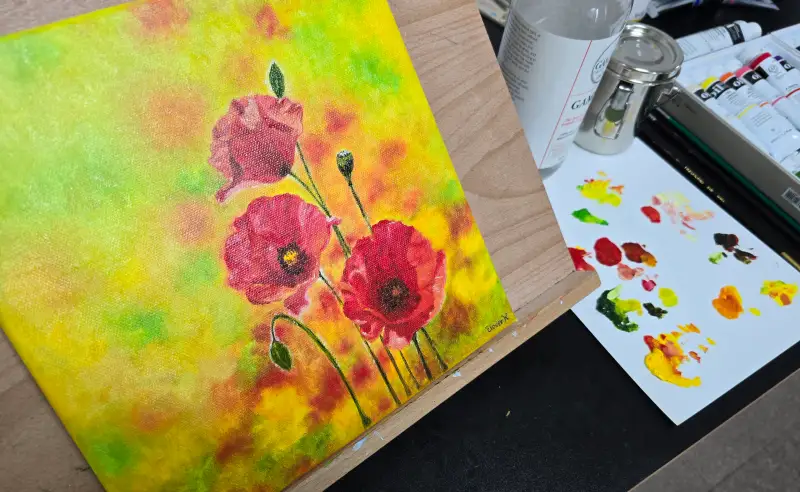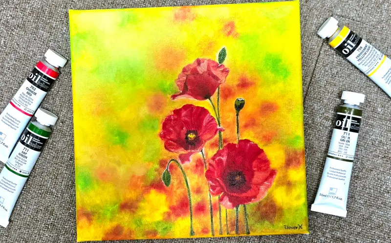 이젤 위에 캔버스 올려 놓고, 신한 유화물감으로 휘리릭 묘사해 보는 양귀비꽃~!