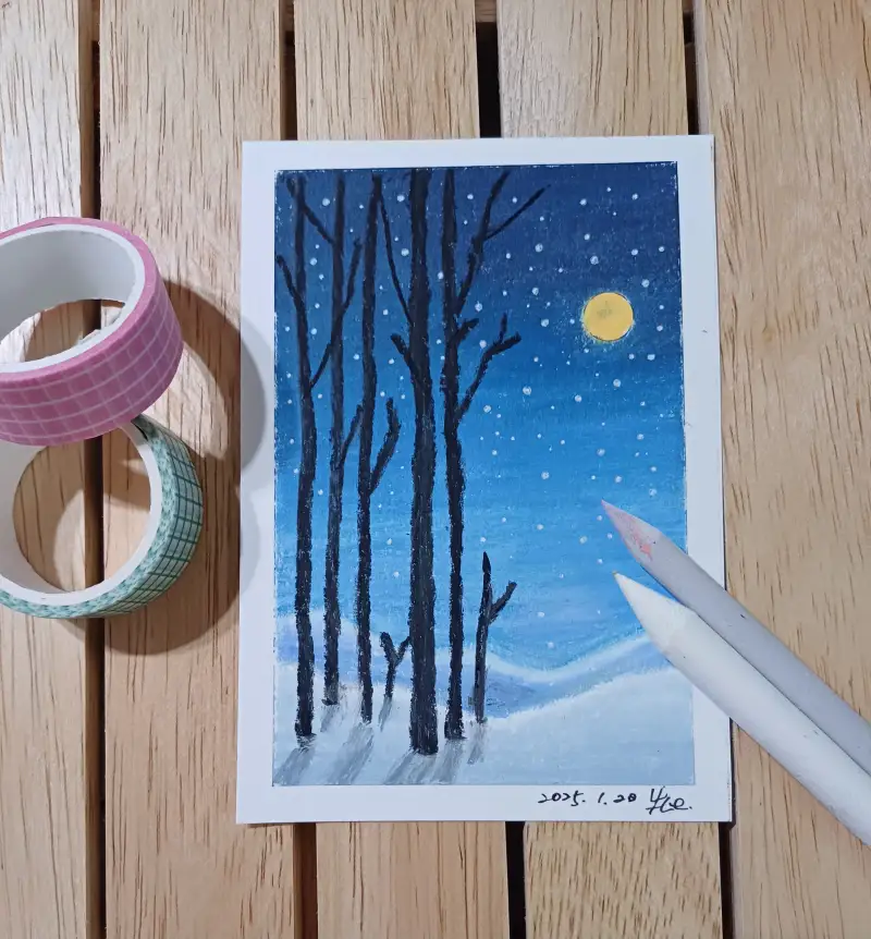 다가올 정월 대보름 둥근달을 생각하며 그렸어요