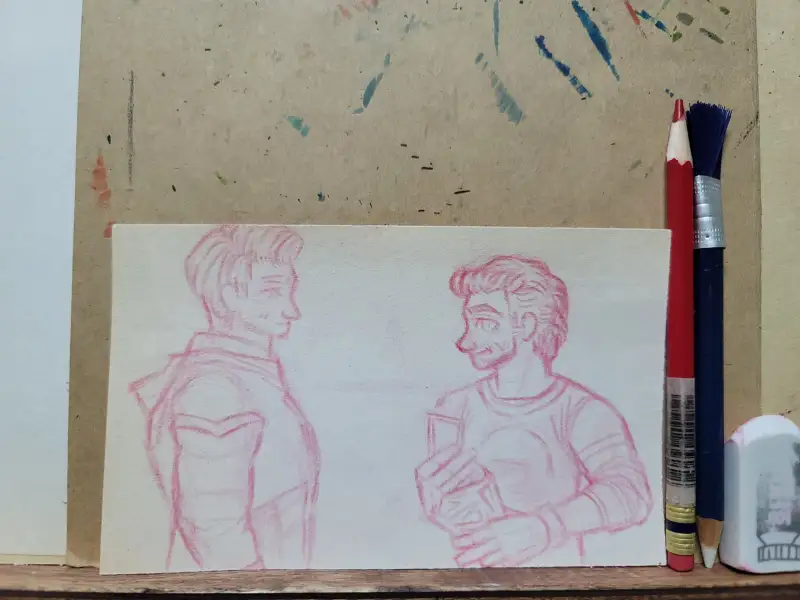 먼저 스케치 과정을 찍은 사진 입니다. 저의 인물 드로잉 실력이 좋지 못해 인물이 닮지 않을 수 있지만, 최대한 열심히 닮게 그려보았습니다.