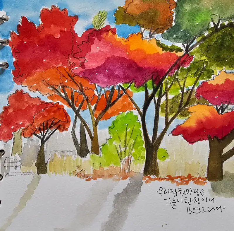 우리집 뒷마당을 수채물감으로 그려봤어요