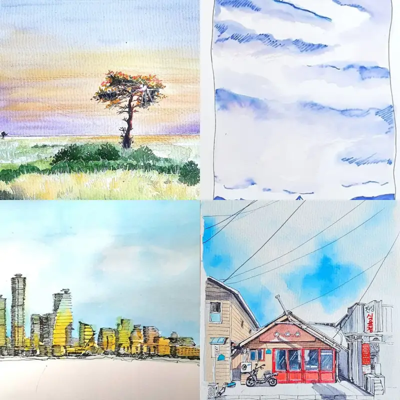 [드로잉로그 1] 2주차 하늘 그림 4점 - 화방넷 커뮤니티