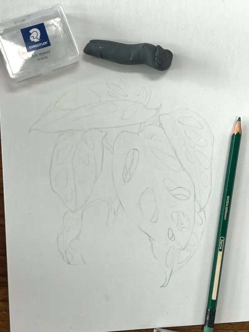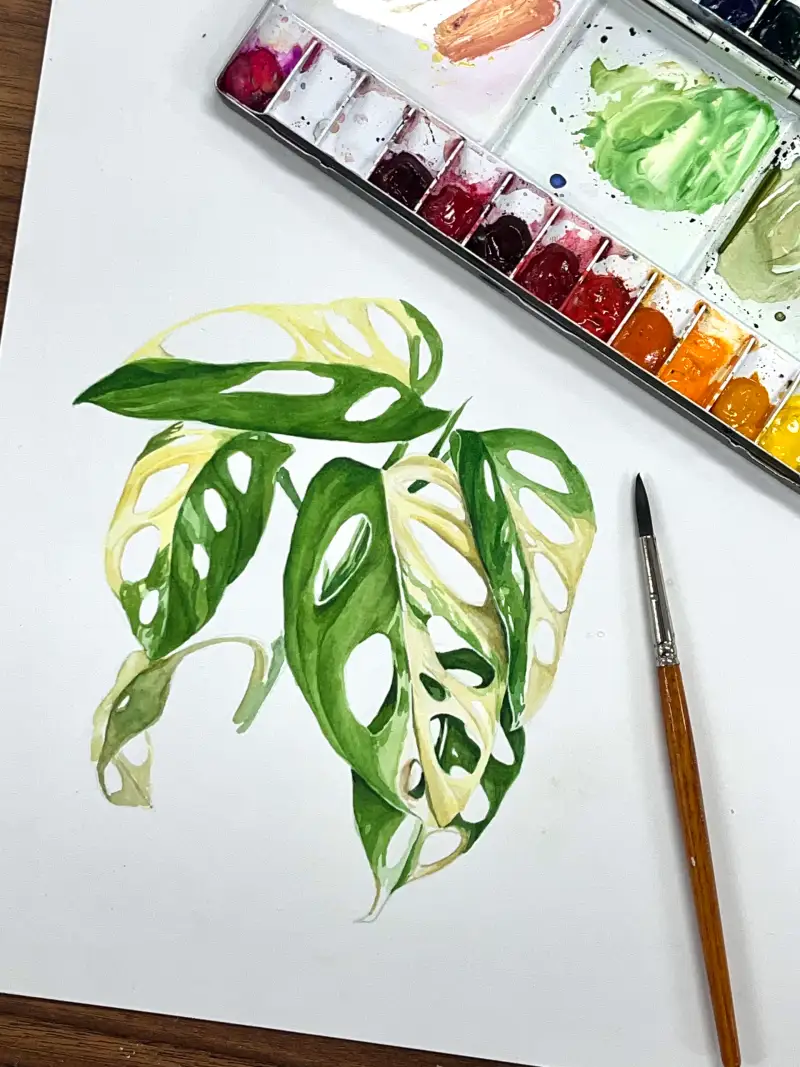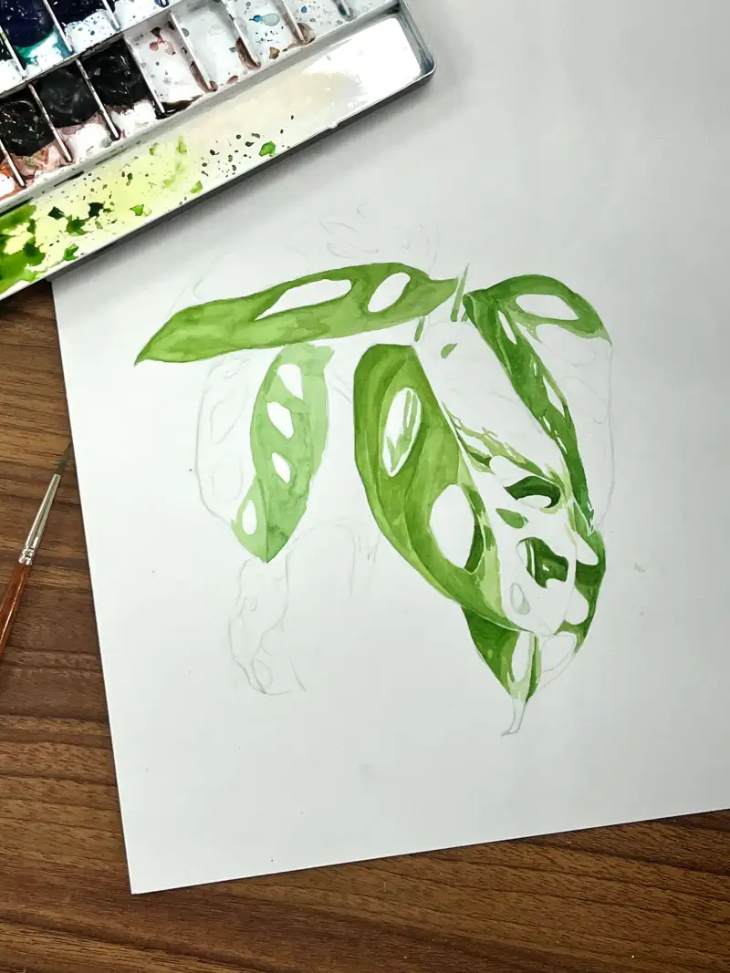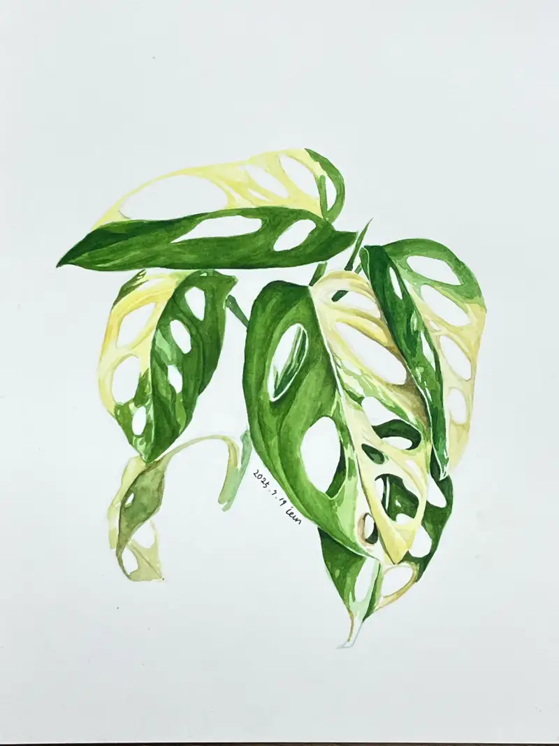 수채화로 그려본 무늬아단소니는 여름에 아주 쑥쑥 잘자라요! 아무래도 더운나라에서 잘 자라는 식물이다보니 그런가봐요!