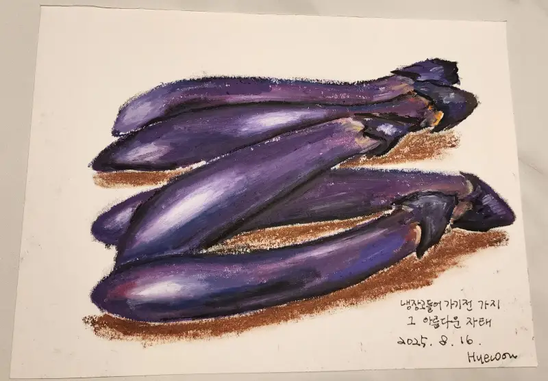 가지를 사다가 냉장고 안에 넣기 전에 그려봄