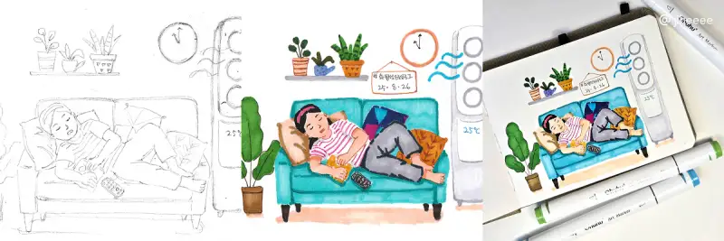 집 안팎에서 느낄 수 있는 시원함을 그림으로 만나볼 수 있었습니다.🌴🌊