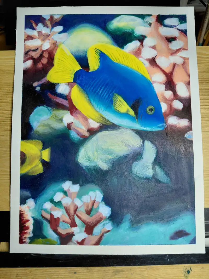 어차피 물고기를 제외하면 아웃포커싱에 가까운 배경이라 네오칼라를 요리조리 블랜딩해가면서 뭉개듯 묘사해주었습니다.